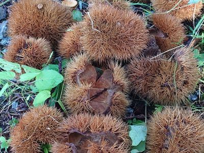 緑色だったイガがだんだんと茶色に変わり始めて、今か今かと待ちわびていたのですが、ここ数日でたくさんのイガが地面にころんころん。 ぱっくりと開いたイガの中から、ツヤツヤと輝く栗が顔をのぞかせている姿は、なんだか宝物を見つけたような気分になります😊